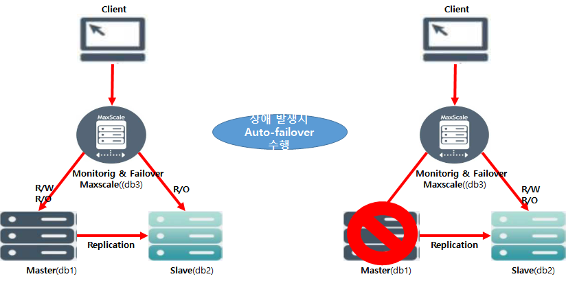 - Master fail 발생시 MaxScale이 장애를 탐지하고 Auto Fail-over 실행