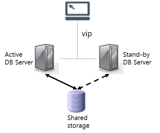 - Server 2대와 shared storage 1대 이용한 Active –Standby 구성으로 Heartbeat을 통해 Auto failover 가능
